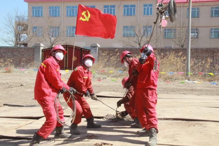 图三为渤海钻探井下技服S10602队党员成立突击队,在西45-5-12井紧张做开工准备。