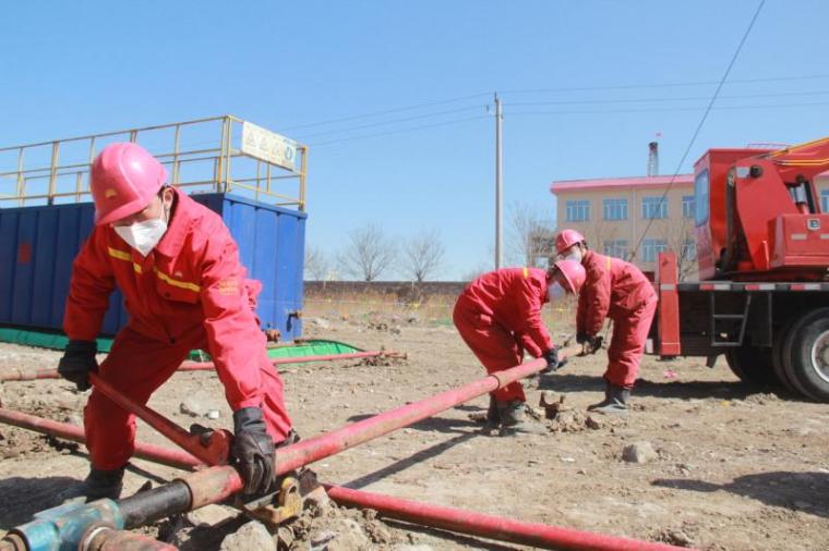 图四为渤海钻探井下技服S10602队员工精心完成管汇安装。