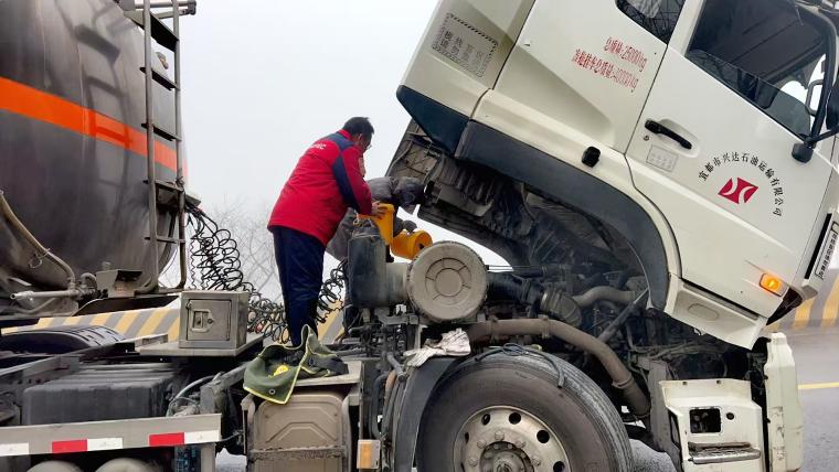 “应该的,这也是为了消除安全隐患。”张盛鹏一边说着,一边迅速为车辆加注防冻液。经过紧急处理,货车发动机温度逐渐恢复正常,安全隐患得以排除。