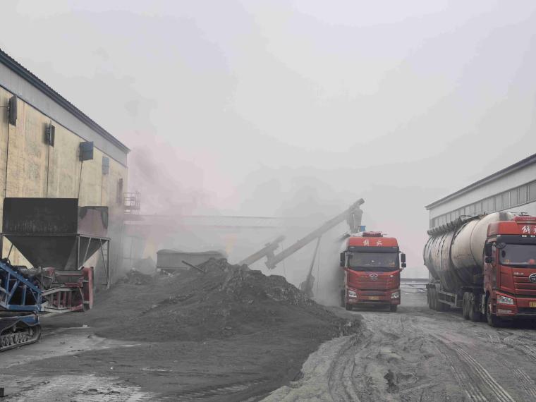 11月18日,在吉林市桦皮厂粉煤灰处置点,灰尘弥漫、车辆穿梭。负责清理监督的安全环保室杜渐和质检车间谭洪波两名公司人员在现场紧张忙碌着。